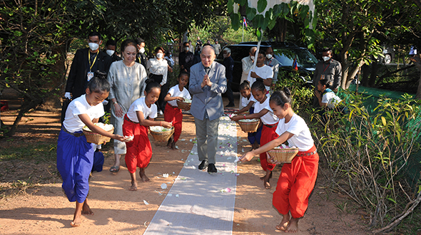 On 22 March 2023, His Majesty King NORODOM SIHAMONI of Cambodia is paying visit to the Preah Ream Bopha Dévi School of Fine Arts, located in Banteay Srei district, Siem Reap Province, and made donation of three thousand USD and three tons of husked rice to the School.