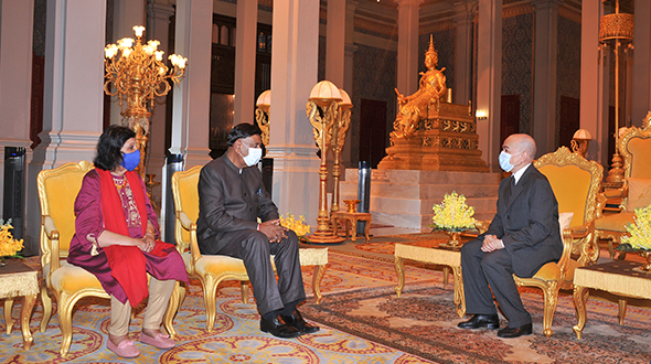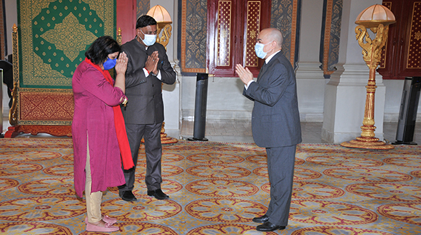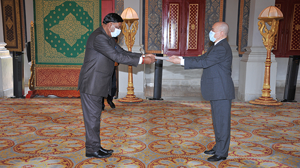 On 5 June 2023, at the Throne Hall, His Majesty King NORODOM SIHAMONI has received the Credentials of H.E. Mr Jagdishwar Goburdhun G.O.S.K, Ambassador Extraordinary and Plenipotentiary of the Republic of Mauritius to the Kingdom of Cambodia.