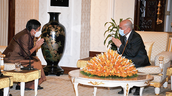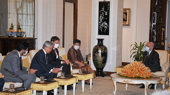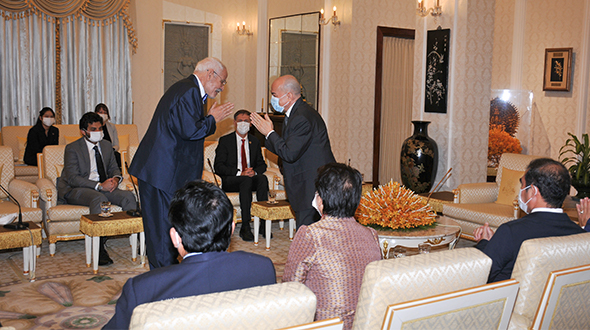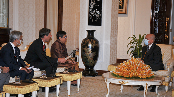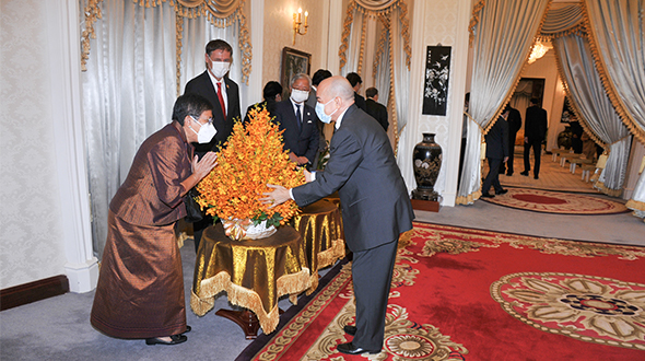 On 16 June 2023, at Khemarin Pavilion of the Royal Palace, His Majesty King NORODOM SIHAMONI greeted a delegation of the International Coordinating Committee for the Safeguarding and Development of the Historic Site of Angkor (ICC-Angkor) led by H.E. Dr. Phoeurng Sackona, Minister of Culture and Fine Arts, H.E. Mr Jacques Pellet, Ambassador of France and H.E. Mr Ueno Atsushi, Ambassador of Japan.