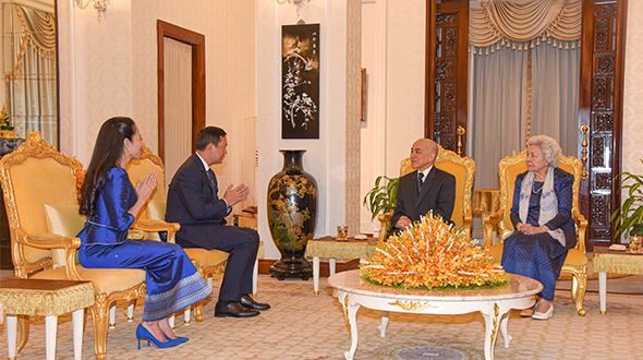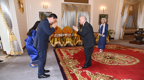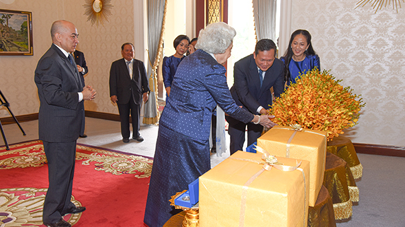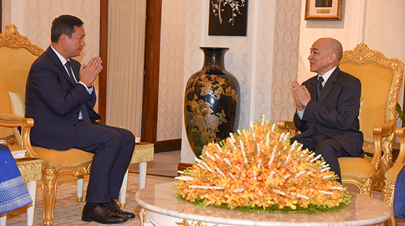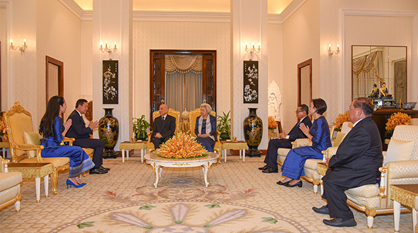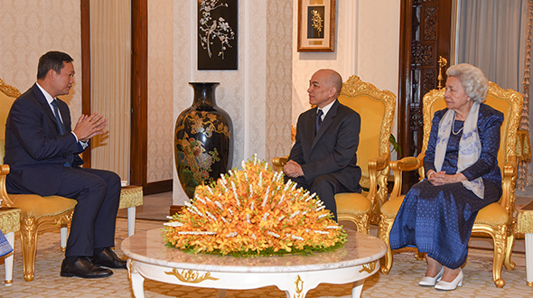 On 3 November 2023, at Khemarin Pavilion, His Majesty King NORODOM SIHAMONI and Her Majesty Queen Mother NORODOM MONINEATH SIHANOUK greeted Samdech Moha Borvor Thipadei Hun Manet, Prime Minister of the Royal Government of Cambodia and Lok Chumteav Dr Pich Chanmony as well as H.E. Dr Chea Serey, Governor of the National Bank of Cambodia and her Colleague.