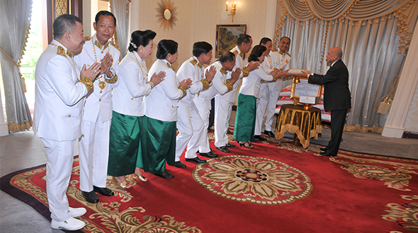 Le 18 juillet 2023, au Pavillon Khémarin, Sa Majesté le Roi NORODOM SIHAMONI a reçu en audience Oknha Te Taingpor, Président de la Fondation Samdech Techo pour le Développement des Petites et Moyennes Entreprises au Cambodge et sa délégation, venus remettre leurs contributions de cent millions (100.000.000) de riels et cinquante tonnes de riz décortiqué pour les œuvres caritatifs de Sa Majesté le Roi.