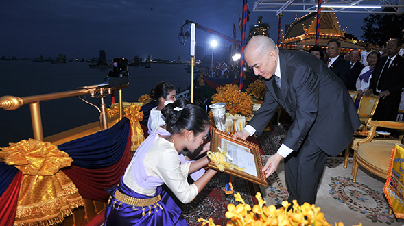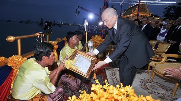 ប្រោសព្រះរាជទានរង្វាន់ជានិមិត្តរូបដល់កីឡាករ កីឡាការនីទូកជ័យលាភី នៅថ្ងៃបញ្ចប់នៃព្រះរាជពិធីបុណ្យអុំទូក