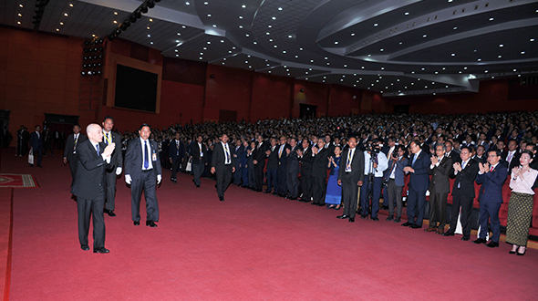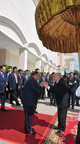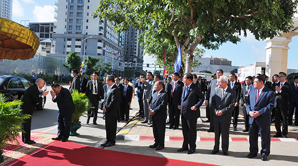 ប្រចាំព្រះរាជាណាចក្រកម្ពុជា អញ្ជើញចូលក្រាបបង្គំគាល់ថ្វាយសារតាំងនៅព្រះទីនាំងទេវាវិនិច្ឆ័យ។