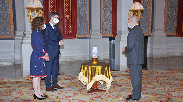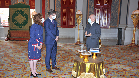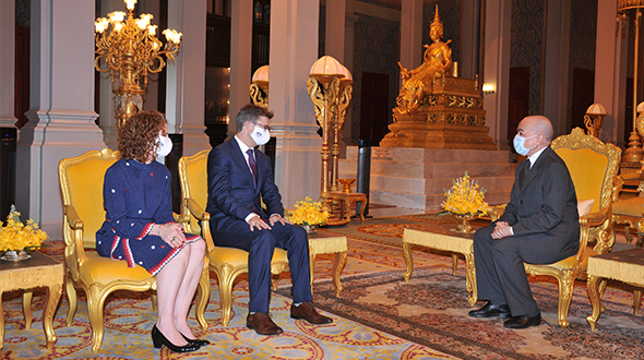 វេលាព្រឹក ថ្ងៃទី ០៩ ខែ កុម្ភៈ ឆ្នាំ ២០២៣ ព្រះករុណាព្រះបាទសម្តេចព្រះបរមនាថ នរោត្តម សីហមុនី ព្រះមហាក្សត្រនៃព្រះរាជាណាចក្រកម្ពុជា ជាទីគោរពសក្ការ:ដ៏ខ្ពង់ខ្ពស់បំផុត សព្វព្រះរាជហឬទ័យប្រោសព្រះរាជទាន ឯកឧត្តម Justin Kevin Whyatt ឯកអគ្គរដ្ឋទូតវិសាមញ្ញ និងពេញសមត្ថភាពតែងតាំងថ្មី នៃប្រទេសអូស្រ្តាលី ប្រចាំព្រះរាជាណាចក្រកម្ពុជា អញ្ជើញចូលក្រាបបង្គំគាល់ថ្វាយសារតាំងនៅព្រះទីនាំងទេវាវិនិច្ឆ័យ។