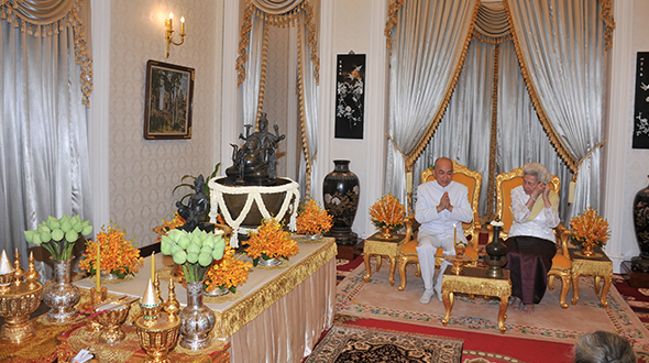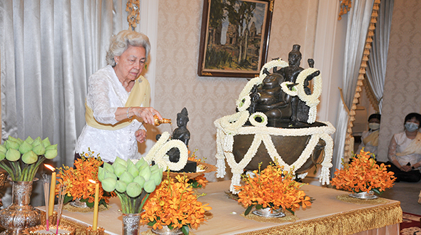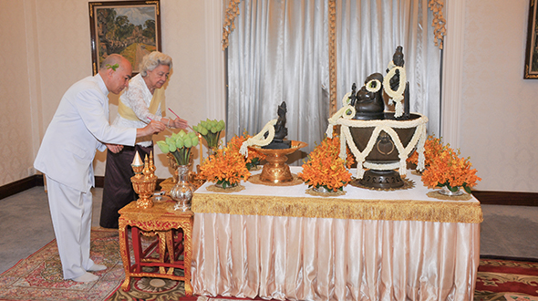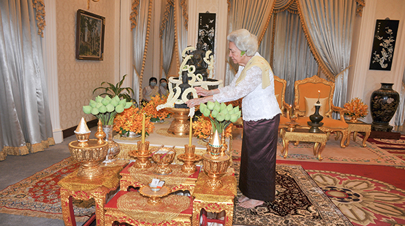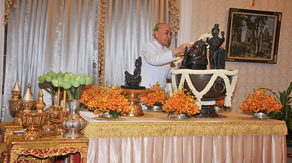 នៅវេលារសៀល ថ្ងៃ អាទិត្យ ១១ រោច ខែ ចេត្រ ត្រូវនឹងថ្ងៃទី ១៦ ខែ មេសា ជាថ្ងៃវារ:ឡើងស័ក នៃពិធីបុណ្យចូលឆ្នាំប្រពៃណីជាតិ ឆ្នាំថោះ បញ្ចស័ក ព្រះករុណាជាអម្ចាស់ជីវិតតម្កល់លើត្បួង និង សម្តេចព្រះវររាជមាតាជាតិខ្មែរ ជាទីគោរពសក្ការ:ដ៏ខ្ពង់ខ្ពស់បំផុត សព្វព្រះរាជហឬទ័យយាងជាព្រះរាជាធិបតីដ៏ខ្ពង់ខ្ពស់បំផុត ក្នុងព្រះរាជពិធីស្រង់ព្រះសុគន្ធវារីព្រះទេវរូប ថ្វាយទឹក ទៀន ផ្កា និង ថ្វាយព្រះពរជ័យមង្គល នៅព្រះមហាប្រាសាទខេមរិន្ទ ។
