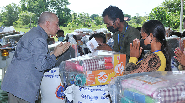 នៅវេលាព្រឹកថ្ងៃទី ២៦ ខែ មិថុនា​ ឆ្នាំ ២០២៣ ព្រះករុណាព្រះបាទ សម្តេចព្រះបរមនាថ នរោត្តម សីហមុនី ព្រះមហាក្សត្រនៃព្រះរាជាណាចក្រកម្ពុជា​ ជាទីគោរពសក្ការ:ដ៏ខ្ពង់ខ្ពស់បំផុត ​​សព្វ​ព្រះរាជហឬទ័យយាង​សំណេះសំណាលសាកសួរសុខទុក្ខ និងប្រោសព្រះរាជទានព្រះរាជអំណោយជូន បងប្អូនប្រជាកសិករក្រីក្រចំនួន ៤១០ គ្រួសារ ស្ថិតនៅភូមិទ្រាបសណ្តាយ ឃុំថ្មី ស្រុកចិត្របុរី ខេត្តក្រចេះ ។ ព្រះរាជអំណោយប្រោសព្រះរាជទានដល់បងប្អូន​​ប្រជារាស្រ្តទីទ័លក្រនា​ពេលនោះ មាន៖ អង្ករ ៥០គីឡូក្រាម មី២កេស ត្រីខ ១០កំប៉ុង ឃីតមួយកញ្ច​ប់ (មុង១ ភួយ១ សារុង១ ក្រមា១) តង់កៅស៊ូ១ ស្បែកជើងផ្ទាត់ ០១ គូរ អាវរងារ១ និង អាវយឺត១ មានបោះពុម្ពផ្លាក “ព្រះរាជអំណោយព្រះករុណាជាអម្ចាស់ជីវិតតម្កល់លើត្បូង ព្រះមហាក្សត្រនៃព្រះរាជាណាចក្រកម្ពុជា” ព្រមទាំងថវិកាចំនួន ២០០.០០០រៀល ។